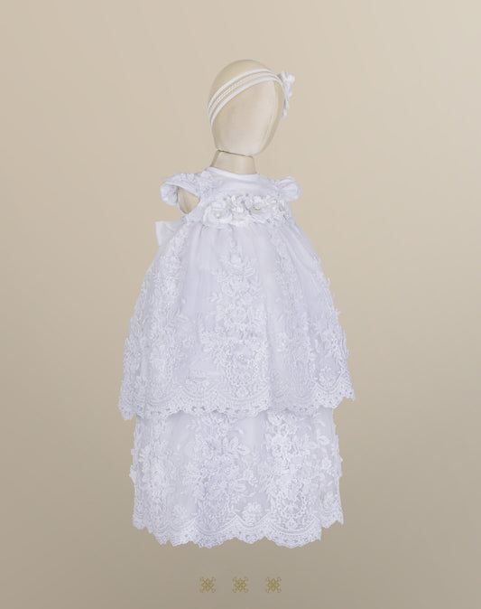 Ropón de bautizo de niña y set de vela hueso 03-664