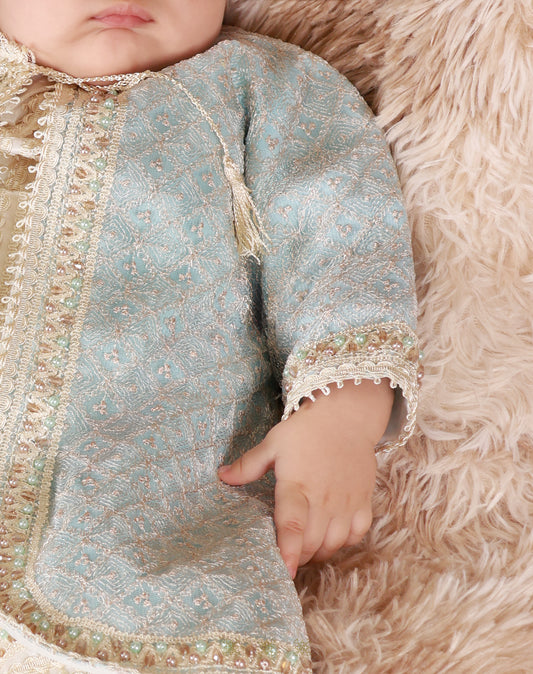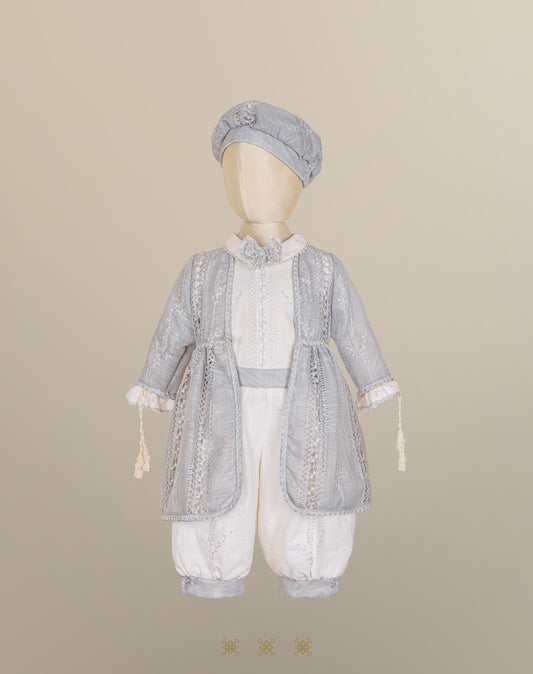 Ropón de bautizo estilo príncipe Beige/azul 05-045