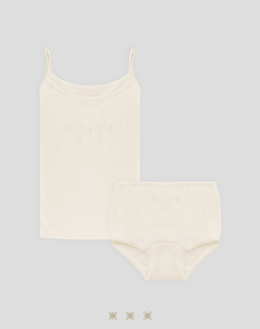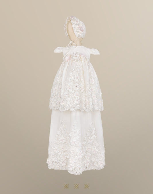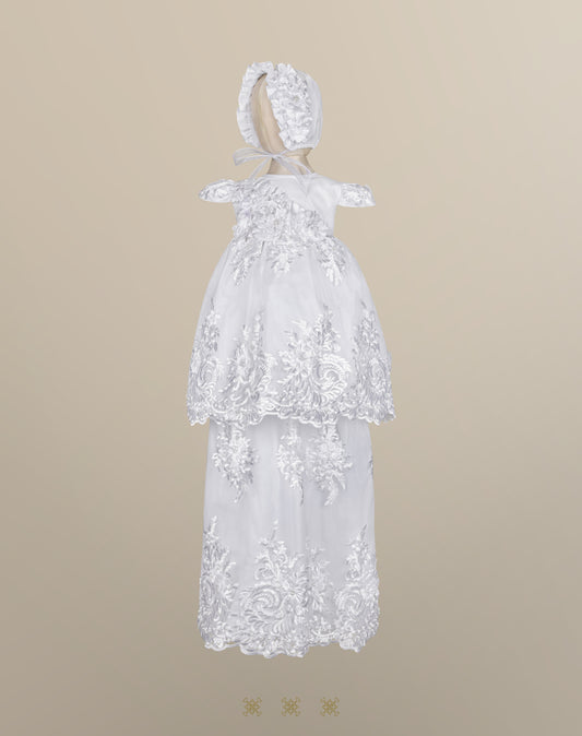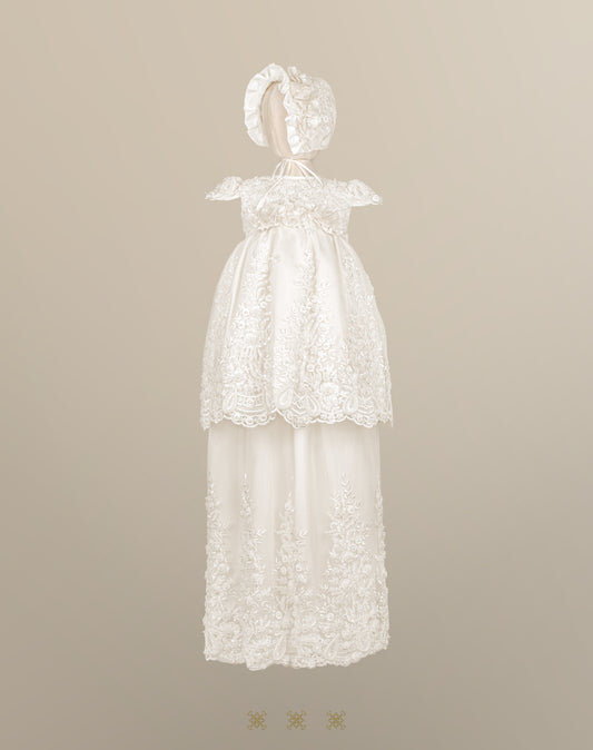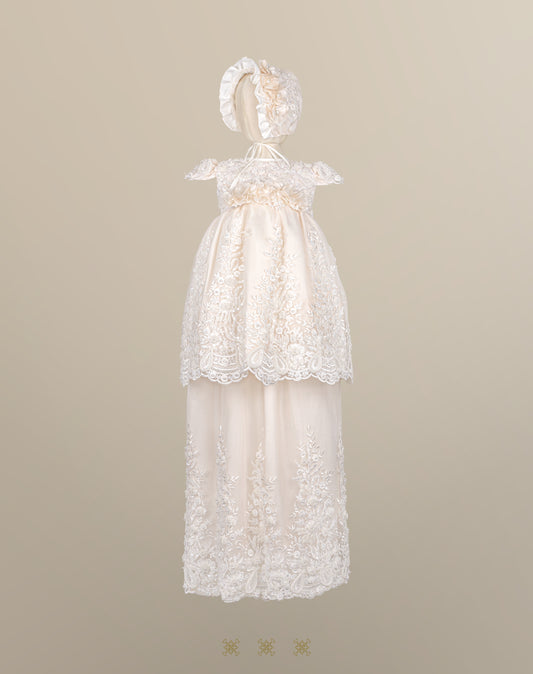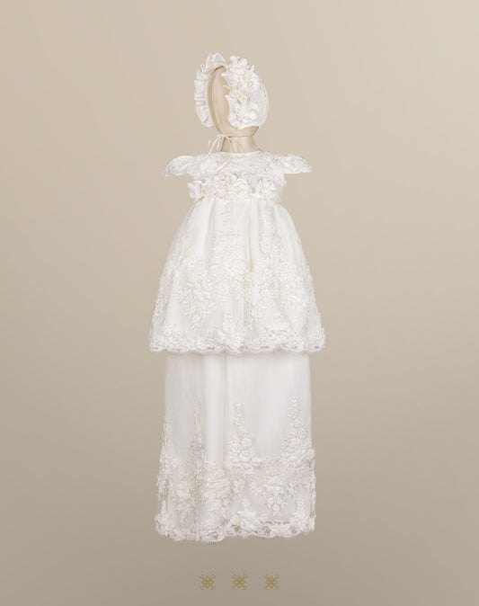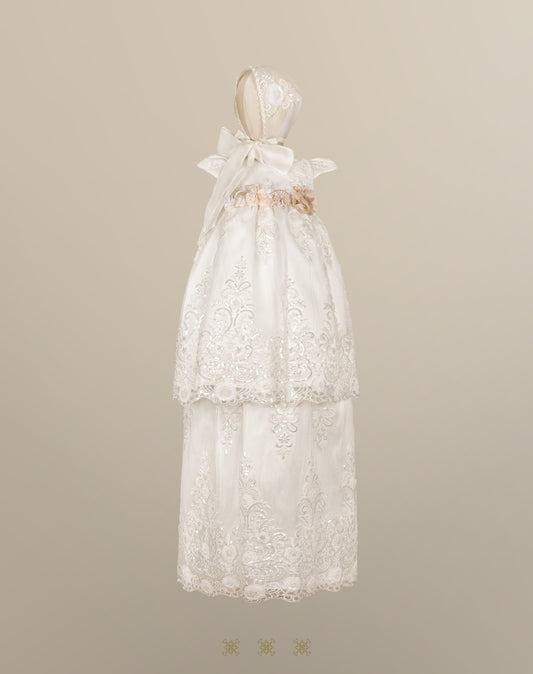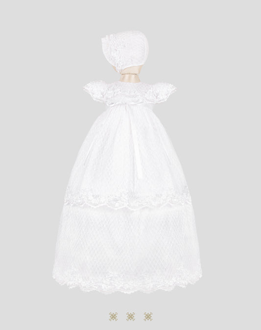 Ropón de bautizo de niña y set de vela hueso 03-664