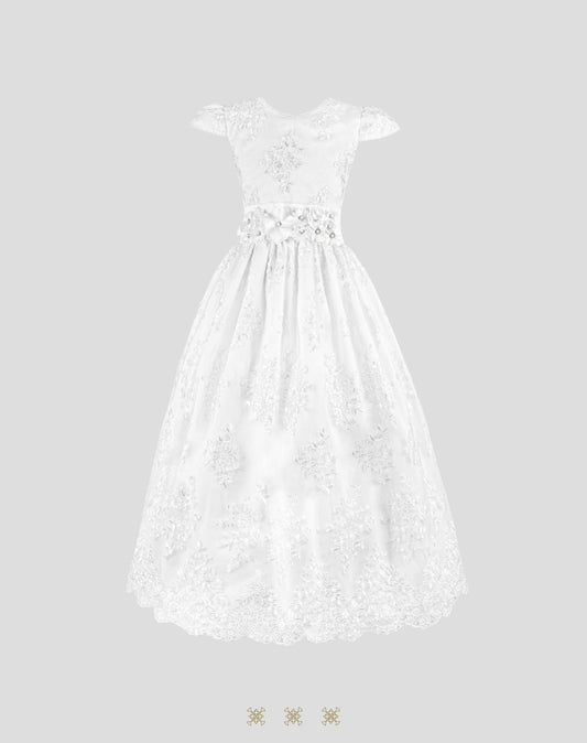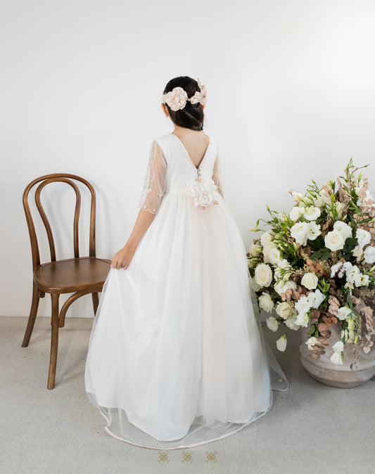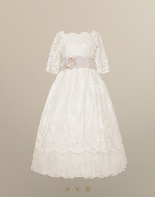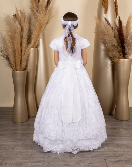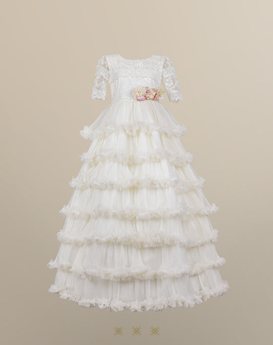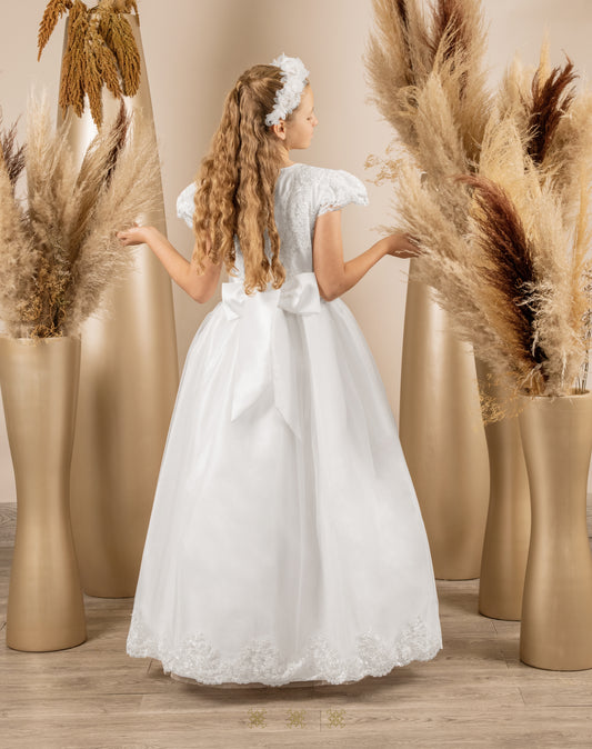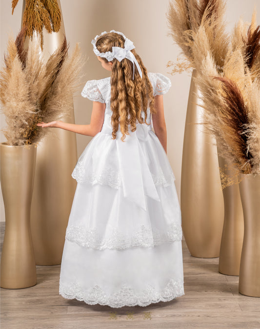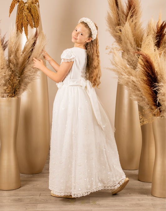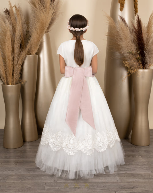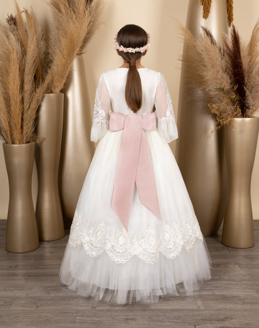Vestido de Primera comunión hueso/palo de rosa 29-057