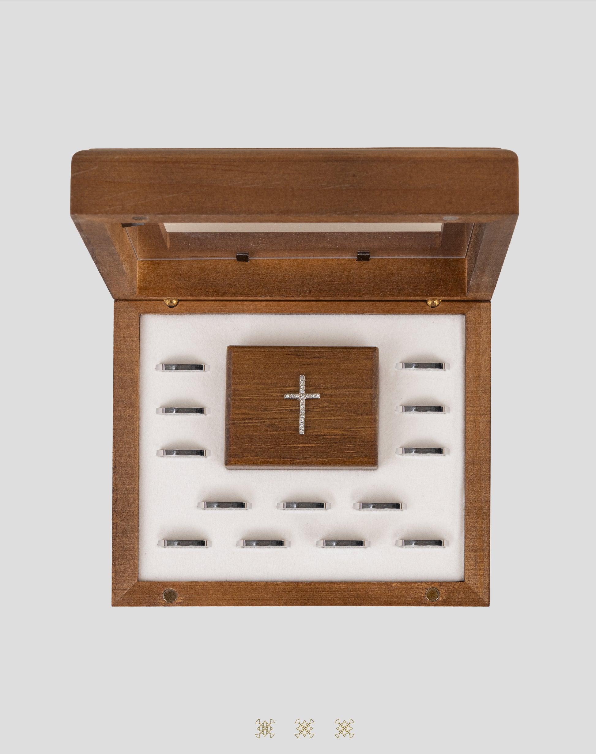 Arras de boda con baño de plata con cofre para guardar con monedas con grabado de la Virgen de Guadalupe.
