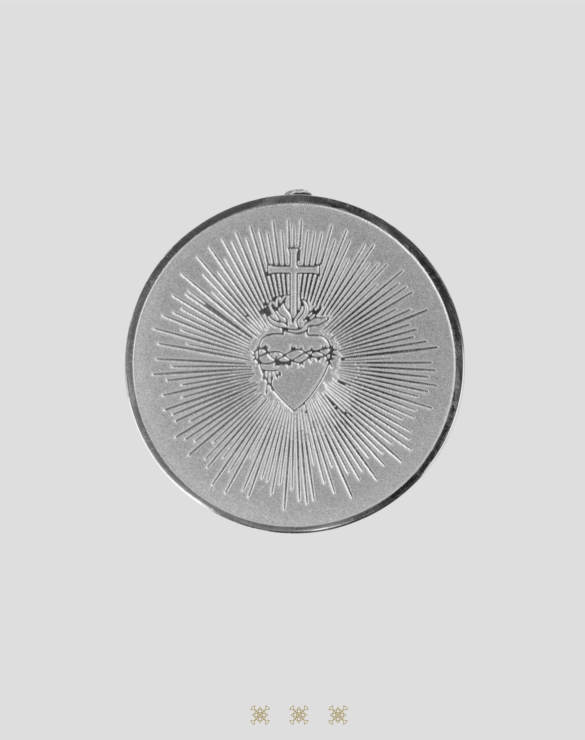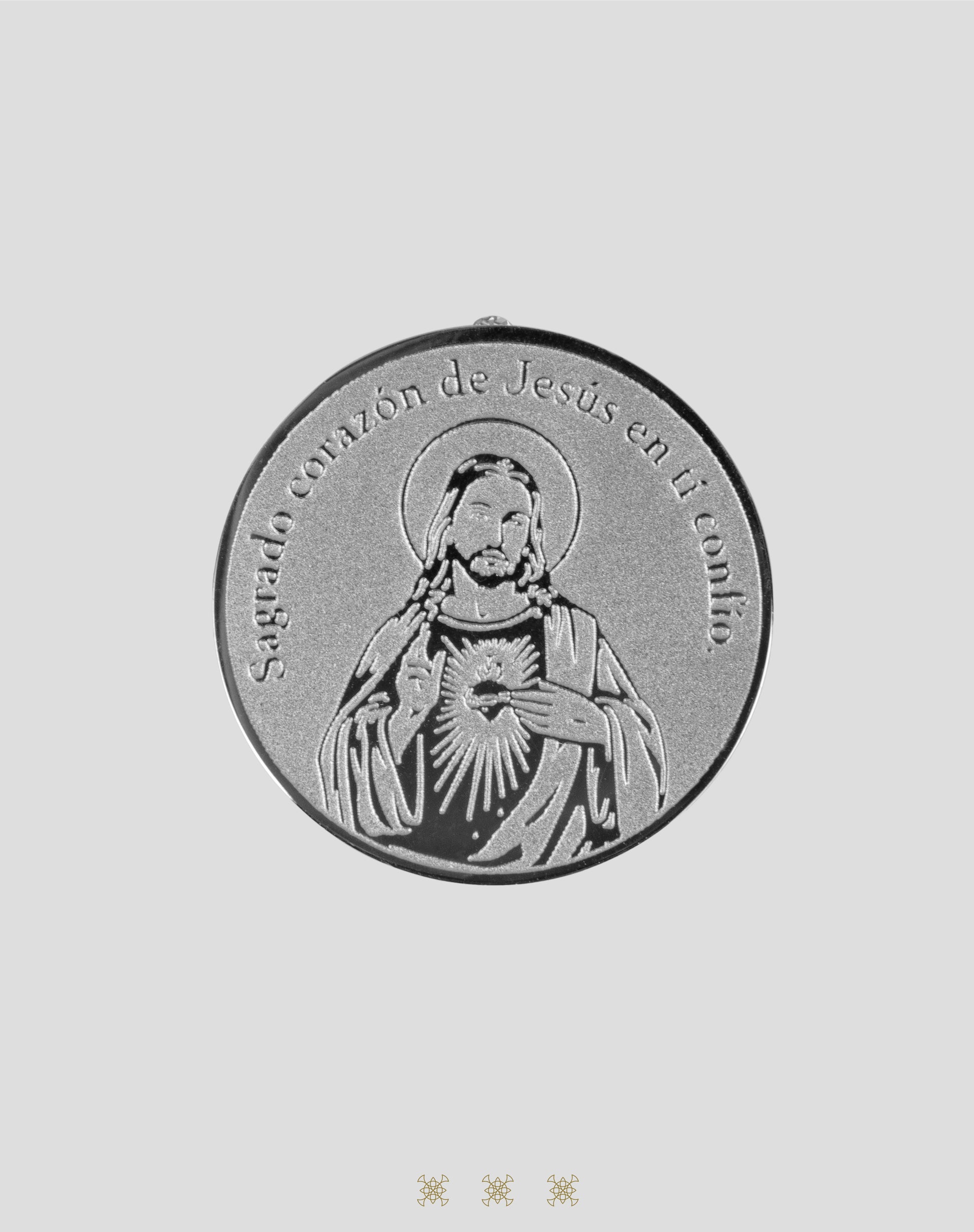 Arras de boda con baño de plata con cofre para guardar las monedas con grabado del Sagrado Corazón de Jesús.