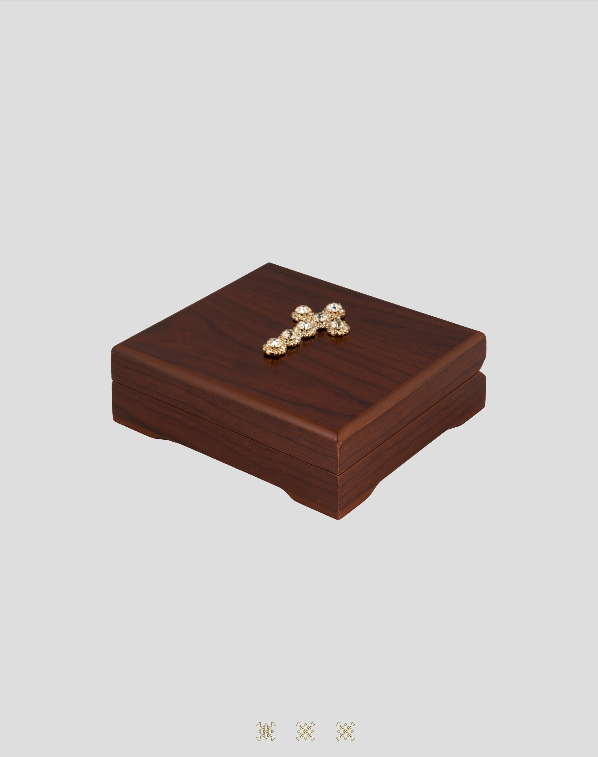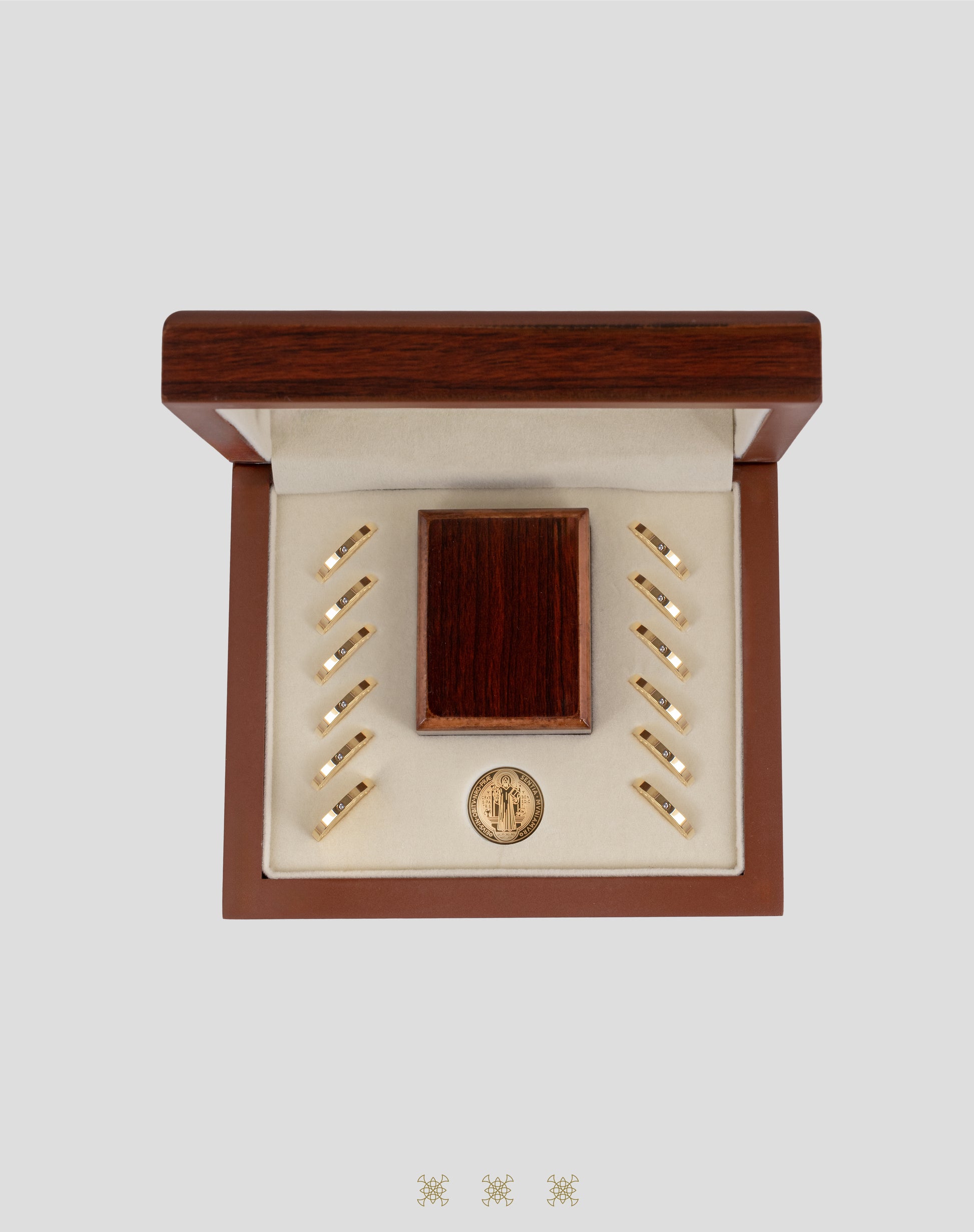 Arras de boda con baño de oro de 14k en cofre pequeño. Incluye cofre para guardar con monedas de San Benito.