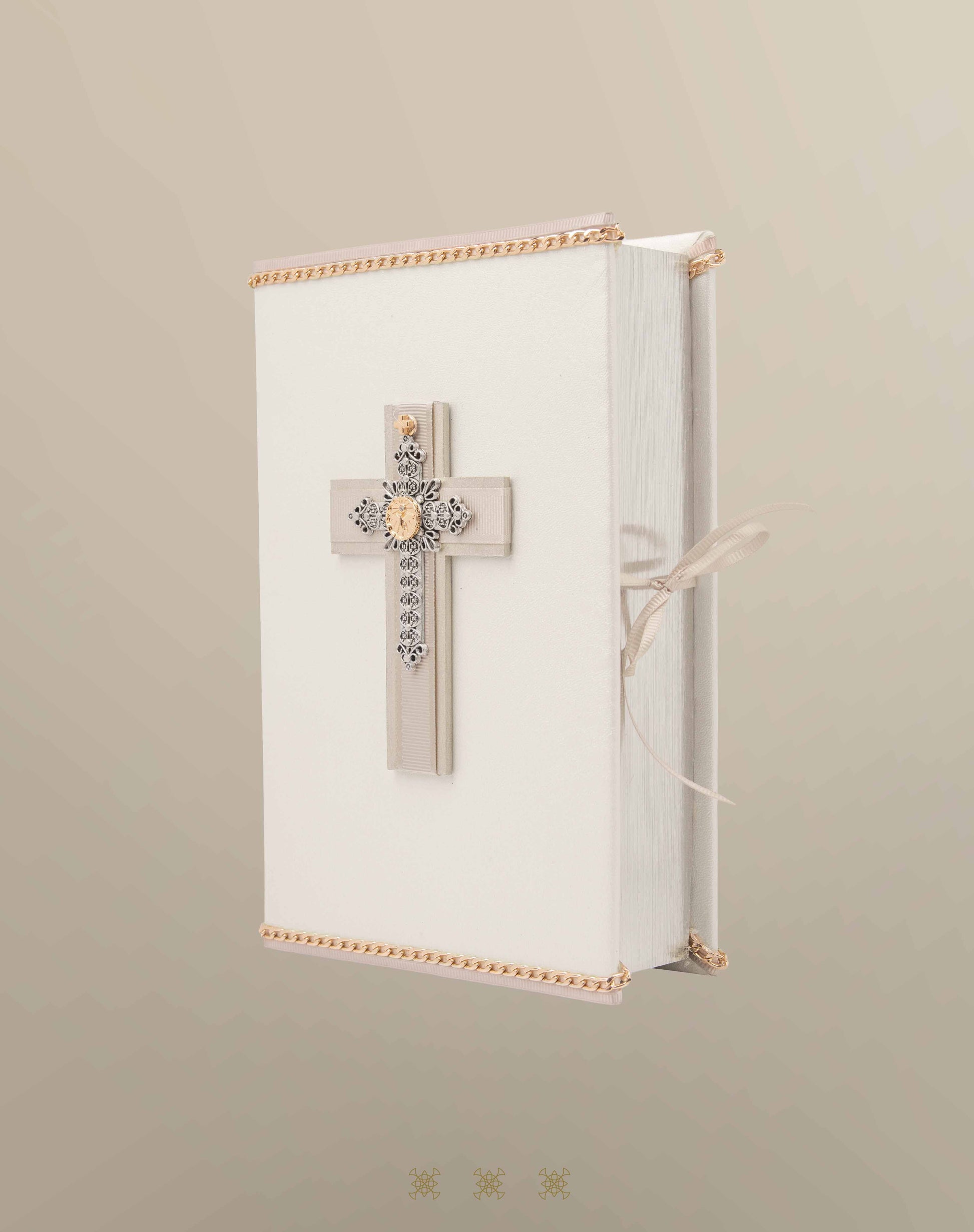 Biblia de boda color blanco forrada de vinipiel con adorno de Cruz metálica con cristo, se puede usar para Boda o Primera Comunión.
