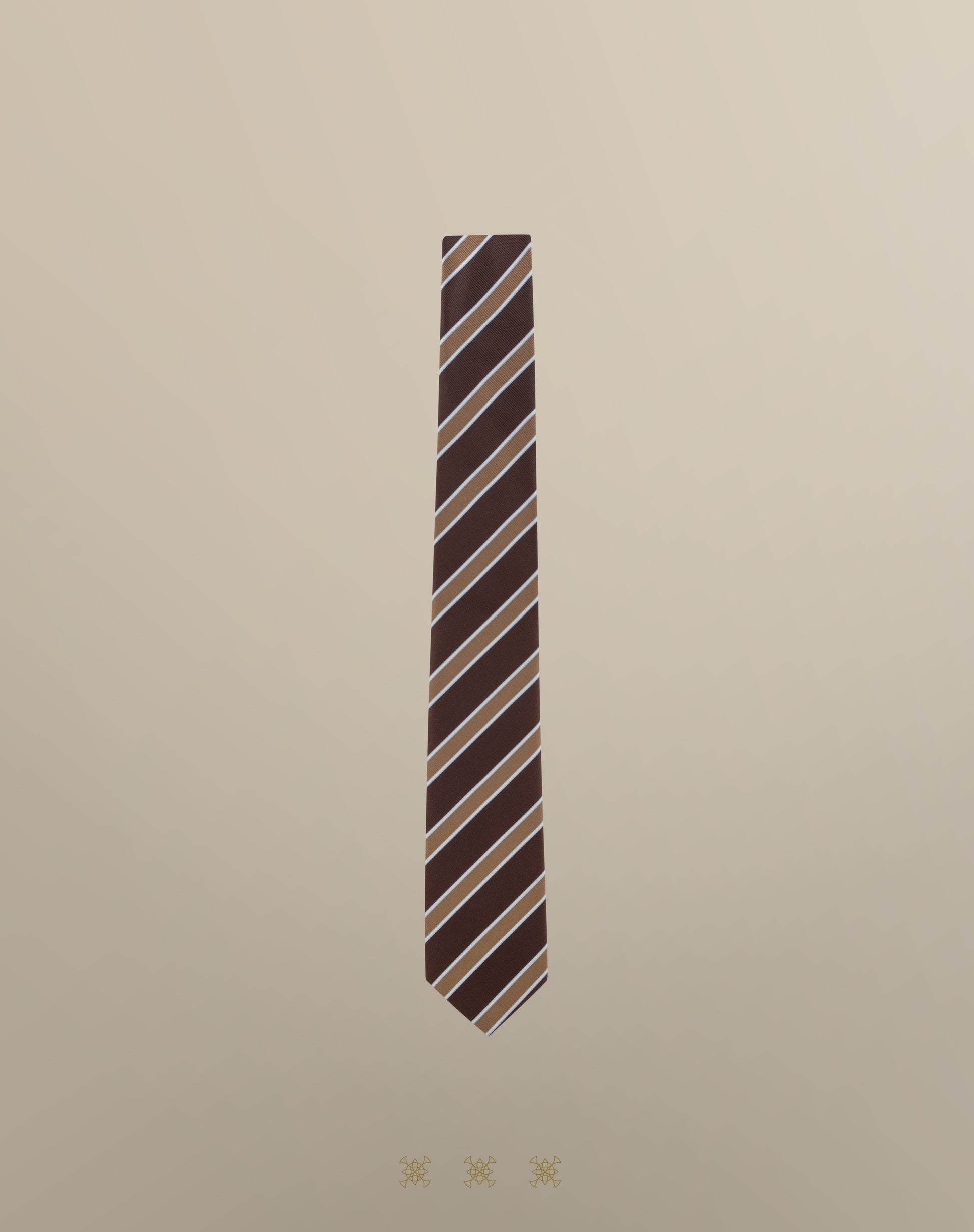 Corbatas sin nudo para adulto color café con textura de rallas diagonales.