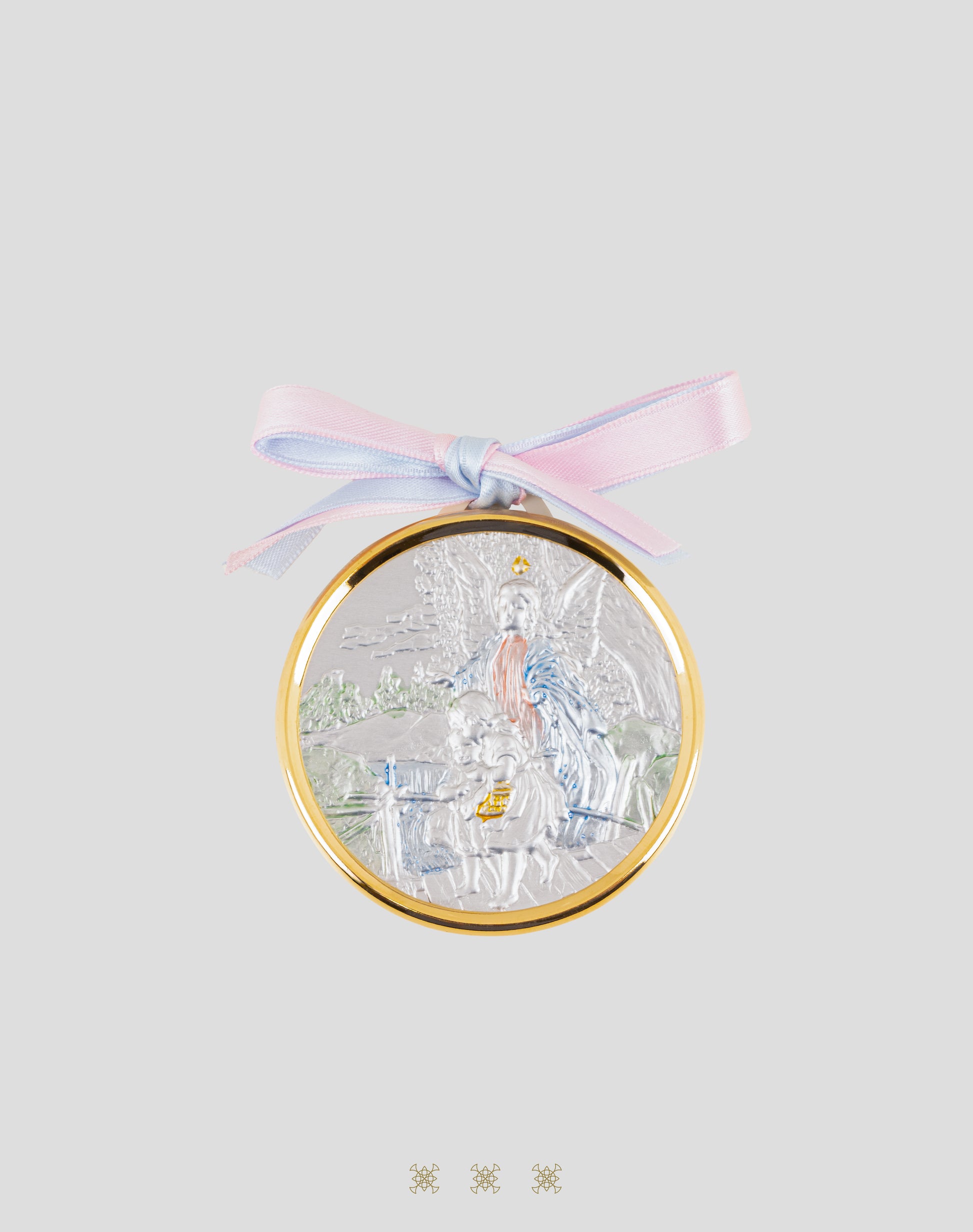 Medalla de cuna plata con dorado con imagen de Angel de la guarda.