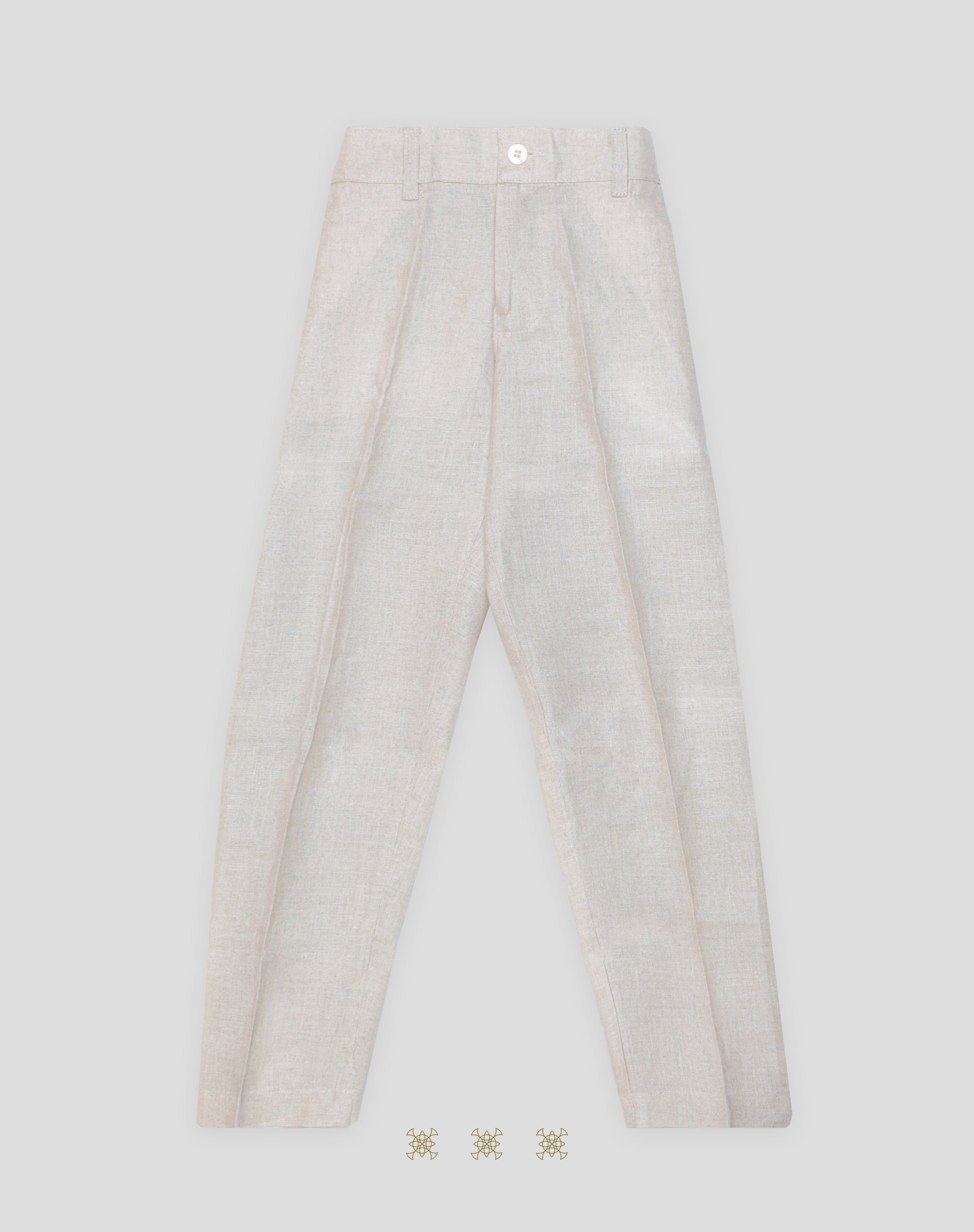 Pantalón de lino, bolsas a los costados, resorte en la parte trasera.