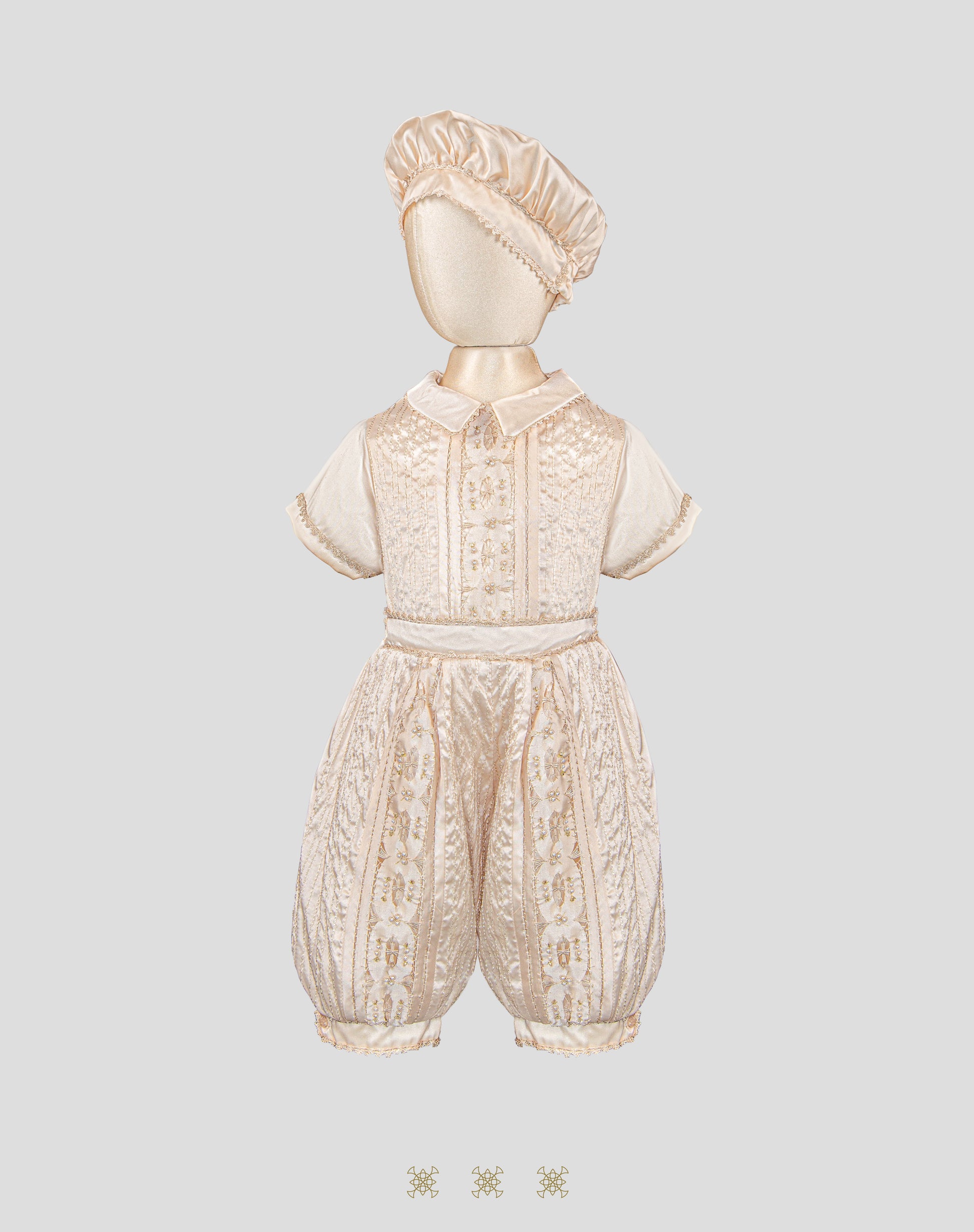 Este ropón es un hermoso conjunto estilo bombacho de 3 piezas de alta costura completamente artesanal, con una gran calidad y distinción.