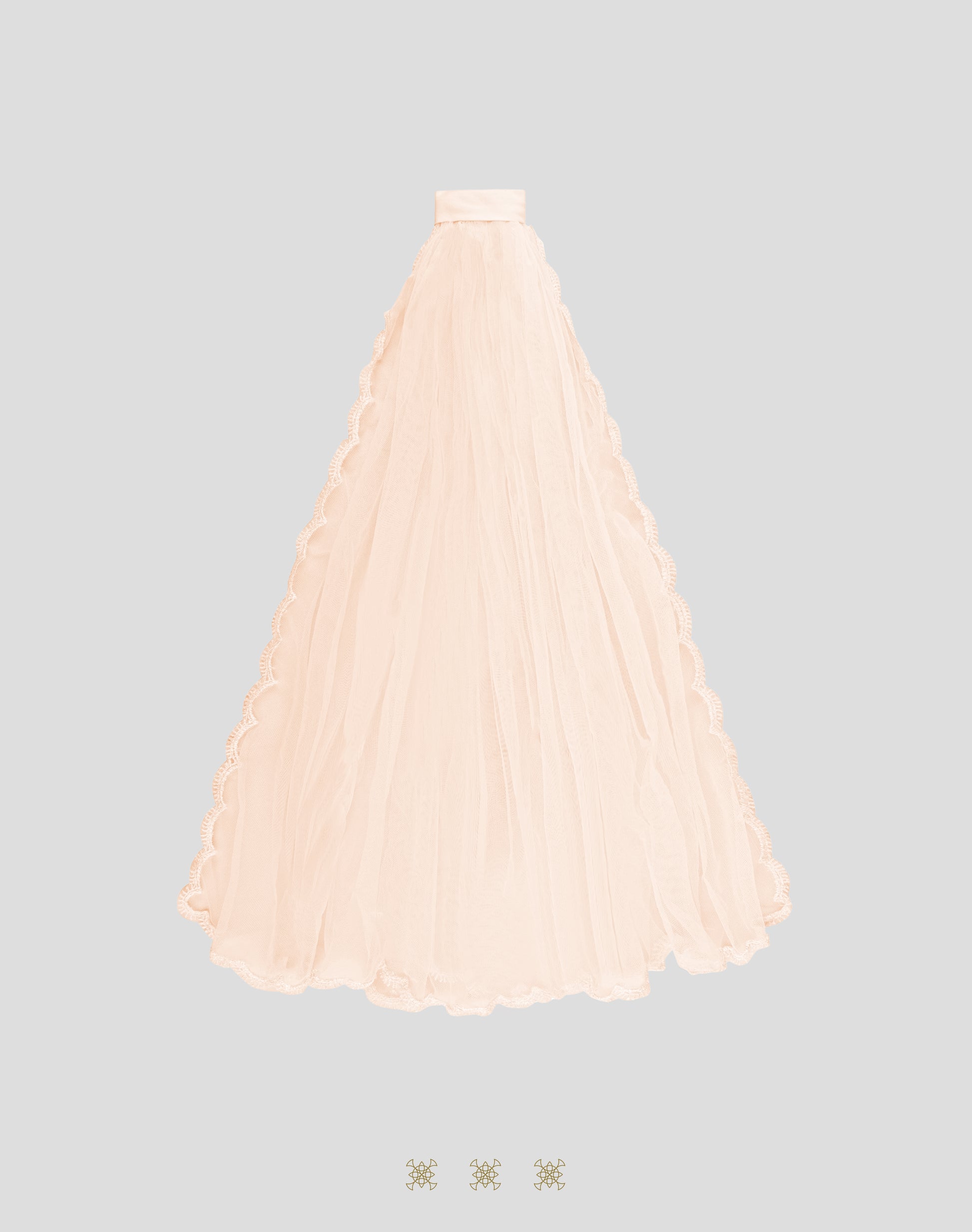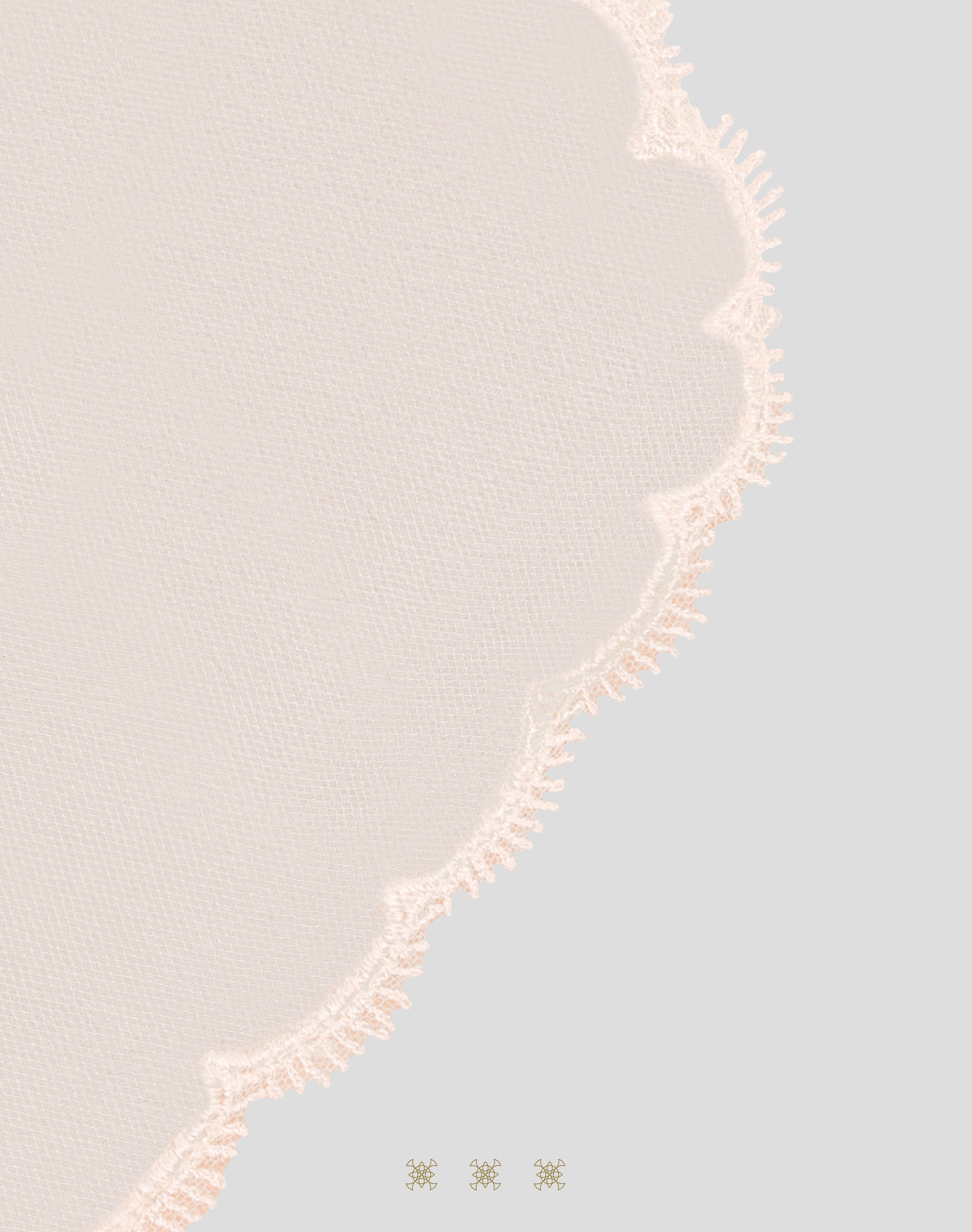 Velo juvenil color rosa con aplicación de encaje festoneado.